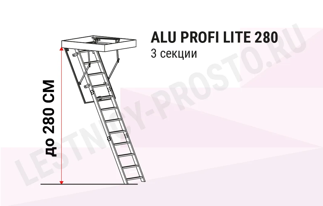 | Чердачная лестница алюминиевая с люком OMAN ALU PROFI LITE 70х120 см, h-280 см |