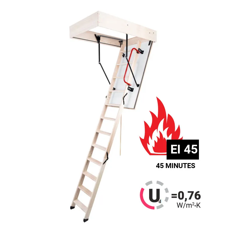 Чердачная лестница MAXI EI 45 имеет класс огнестойкости EI45, что означает 45-минутный предел cопротивлени огню.