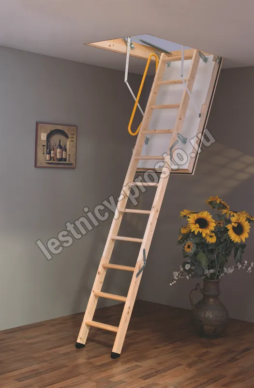 Складная деревянная лестница из 3-х секций с утепленным изолированным люком идеально подходит для крайне холодных чердачных помещений.