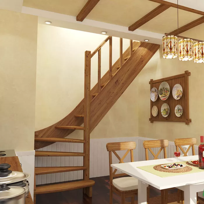 Деревянная межэтажная лестница ЛЕС-07 2470-2675 проем 2360-830, Лиственница