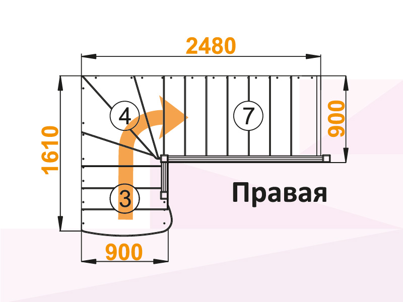 Лестница К-001М/2 с поворотом направо