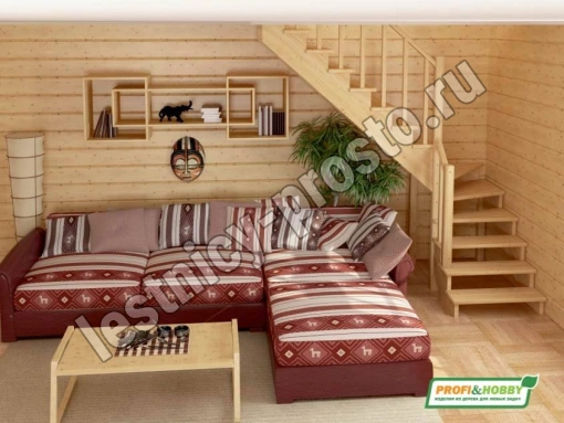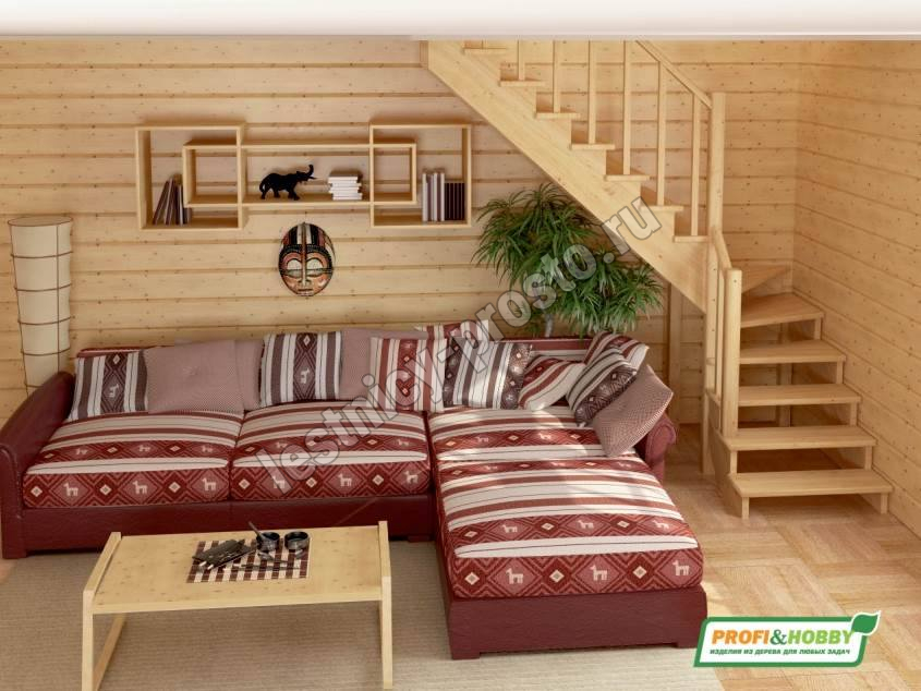 Ступени и поручень лестницы изготовлены из бука, остальные элементы из сосны.