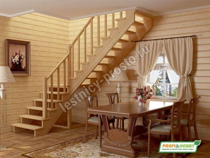 Ступени и поручень лестницы изготовлены из бука, остальные элементы из сосны.