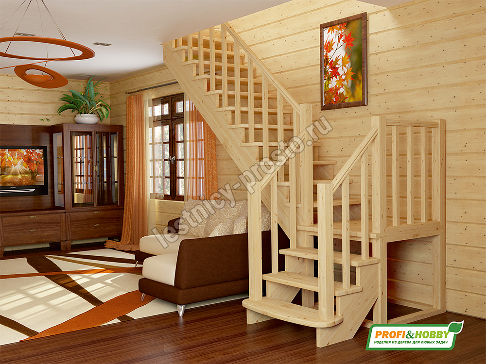 Ступени и поручень лестницы изготовлены из дуба, остальные элементы из сосны.