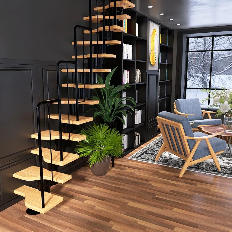 Базовый комплект включает в себя деревянные элементы лестницы и ограждения без какого-либо покрытия. Вы можете заказать у нас покраску лестницы в цвета, отвечающие особенностям вашего помещения.