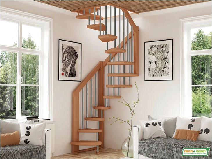 Базовый комплект включает в себя деревянные элементы лестницы и ограждения без какого-либо покрытия.