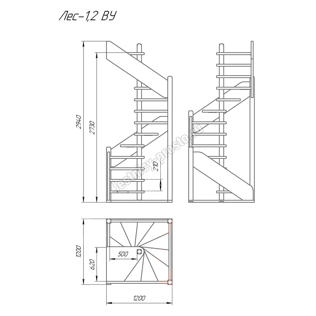 Лестница из сосны ЛЕС-1,2ВУ