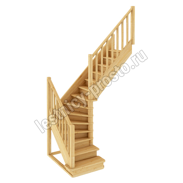 Базовый комплект включает в себя деревянные элементы лестницы с подступенками и ограждения без какого-либо покрытия.