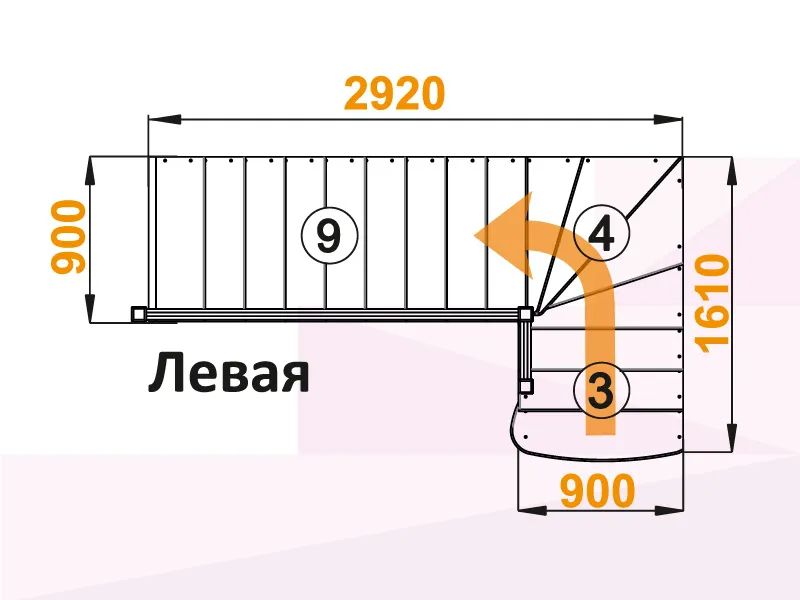 Лестница К-001М/6 с поворотом налево