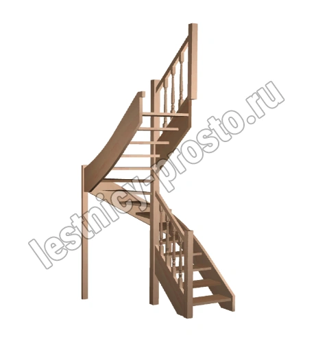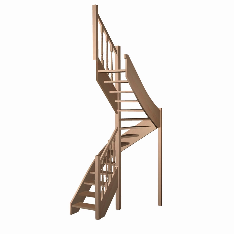 Базовый комплект включает в себя деревянные элементы лестницы и ограждения без какого-либо покрытия. В стандартной комплектации лестницы поставляются с квадратными столбами и точеными балясинами.