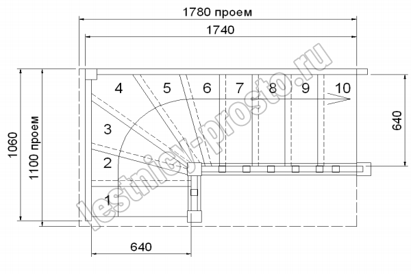 Лестница Универсал изготавливается как с поворотом направо, так и с поворотом налево. Под заказ возможно изготовление лестницы Универсал с высотами этажа: 2300 мм, 2500, мм, 2700 мм, 2900 мм, 3100 мм. В стандартной комплектации лестница поставляется в натуральном цвете, то есть без окрашивания. Первая ступень может быть пригласительной (со скругленными краями или прямой). Базовые ограждения можно заменить на ограждения любого другого вида.