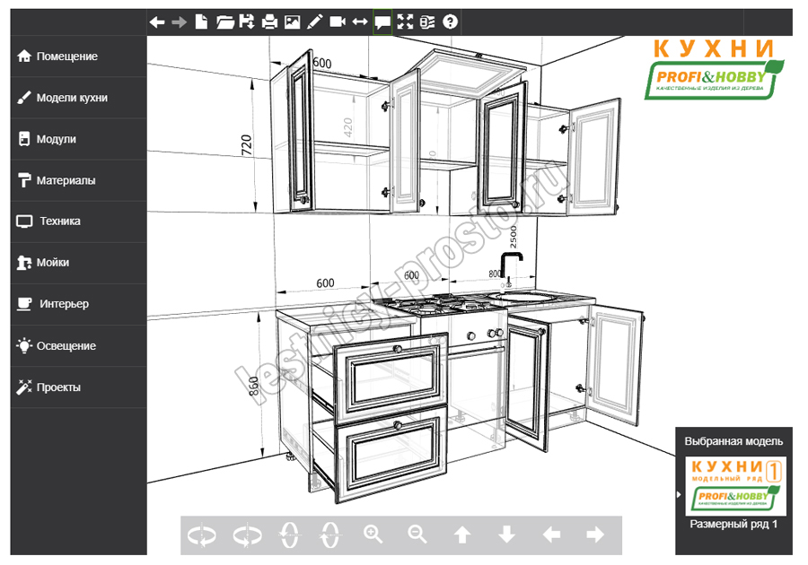 Благодаря модульной системе такая кухня может быть собрана зеркально. В стандартной комплектации нижние тумбы оснащены регулируемыми ножками высотой 100 мм и цоколем из массива сосны 95 мм.