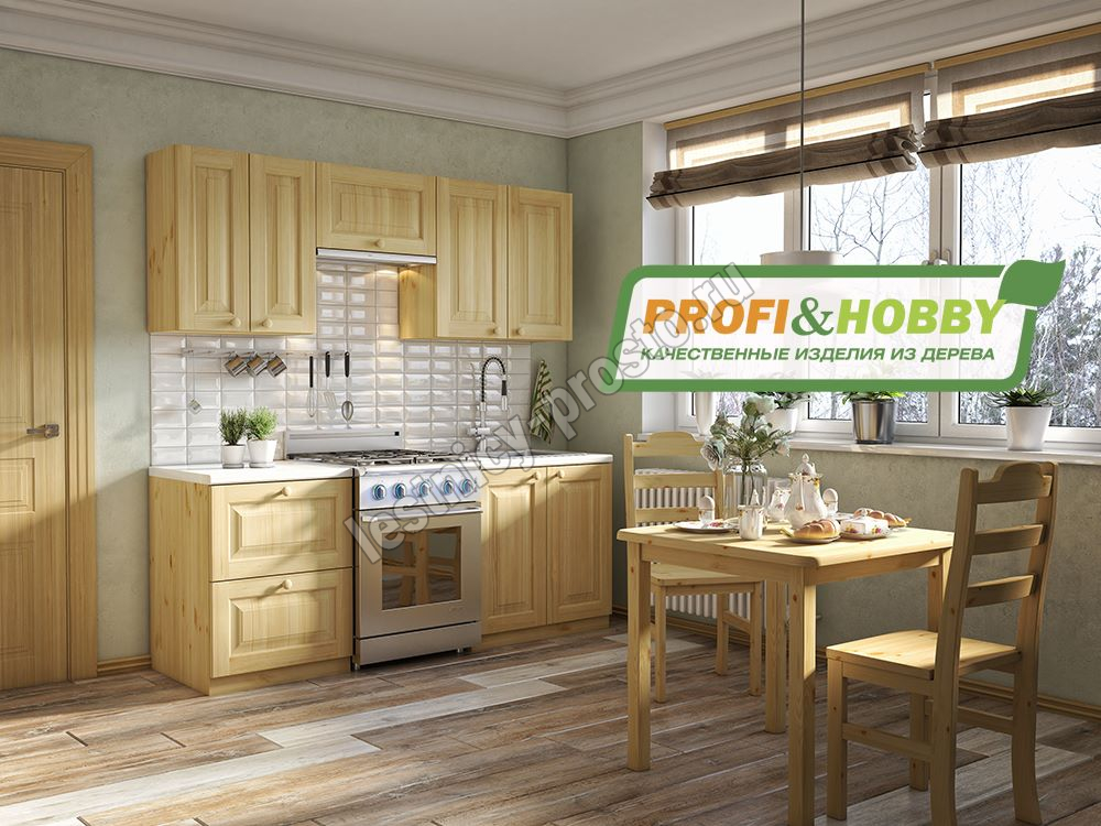 Кухня 2 х 2.32 м, массив сосны, бесцветный акриловый лак