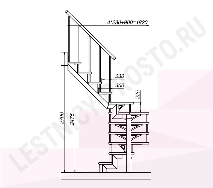 Высота лестницы 2475 - 2700 (11 ступеней) мм