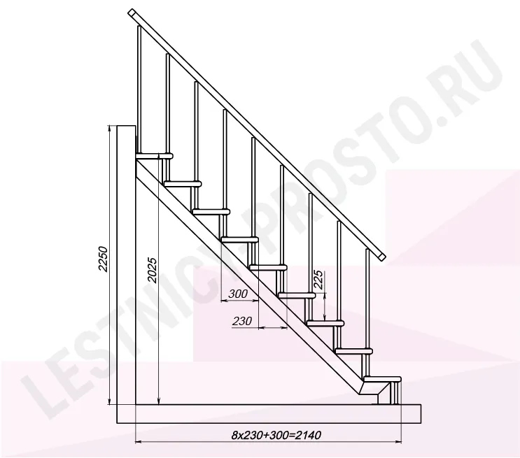 Высота лестницы 2025 - 2250 мм
