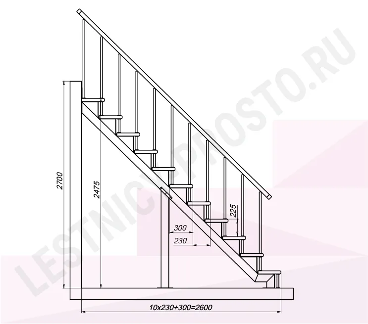Лестница PROSTO MONO прямая, h270 см, ступени лиственница