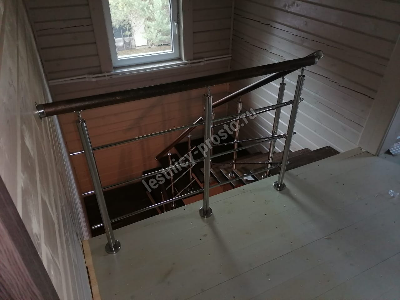 Конструкция представляет собой стальной монокосоур, на который крепятся ступени из выбранной породы дерева.