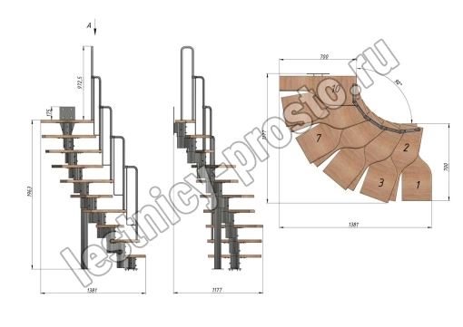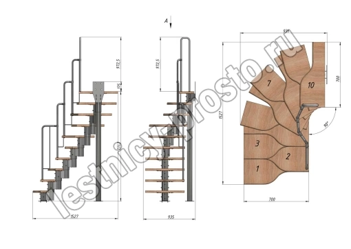 Высота лестницы 1800 - 2640 (10 ступеней) мм