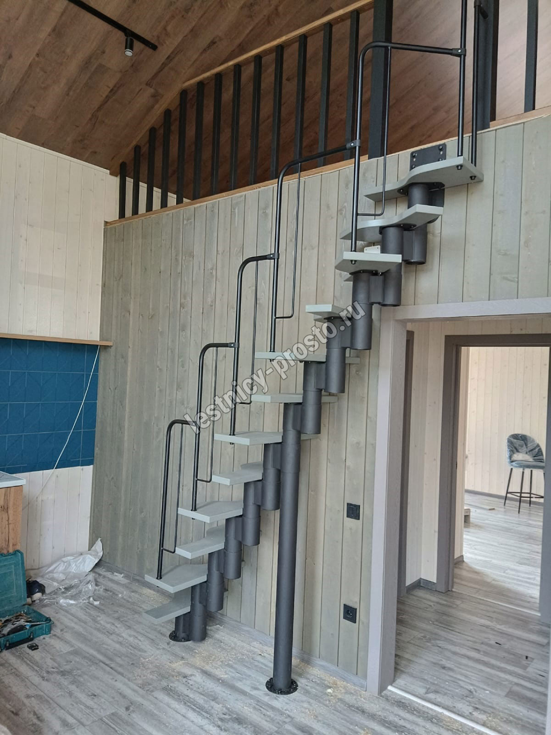 Лестница Prosto Urban Black гусиный шаг 700 мм, h198-288 см (11 ступеней), ясень