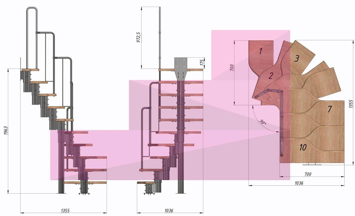 Высота лестницы 1980 - 3600 мм