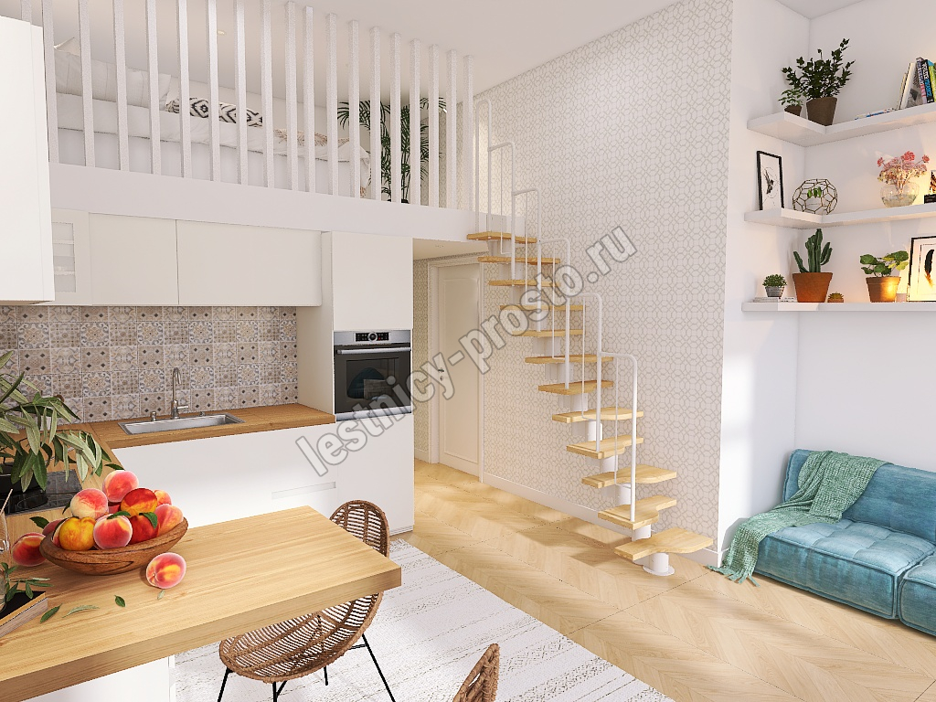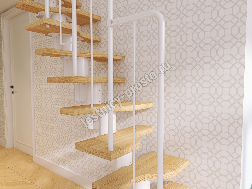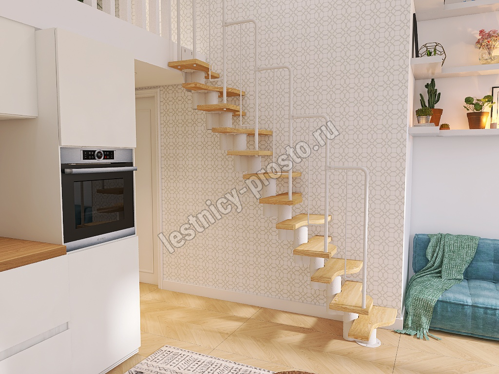 Лестница Prosto Urban White гусиный шаг 600 мм, h216-312 см (12 ступеней), ясень