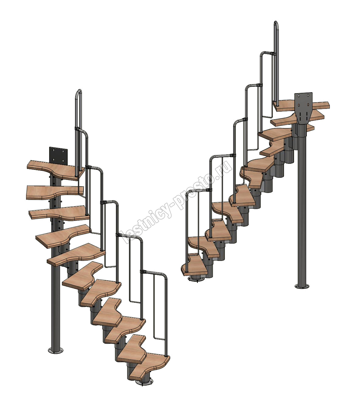 - Регулируемый по высоте в пределах 180-240 мм модуль. Большой диаметр и толщина металла деталей обеспечивают жесткость и прочность конструкции. Регулировка каждого модуля по высоте позволяет легко приспособить лестницу под ваше помещение.