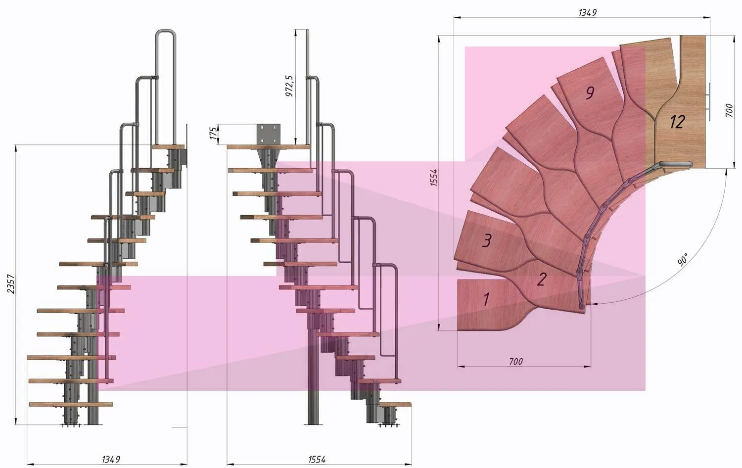 Высота лестницы 2160 - 3120 (12 ступеней) мм