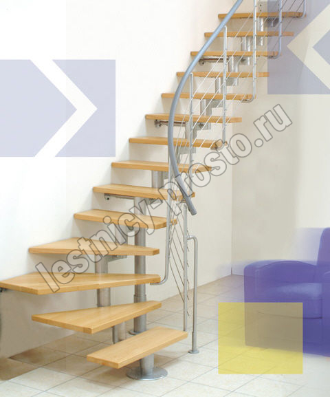 Модульная лестница DIXI PLUS серебро, светлый бук