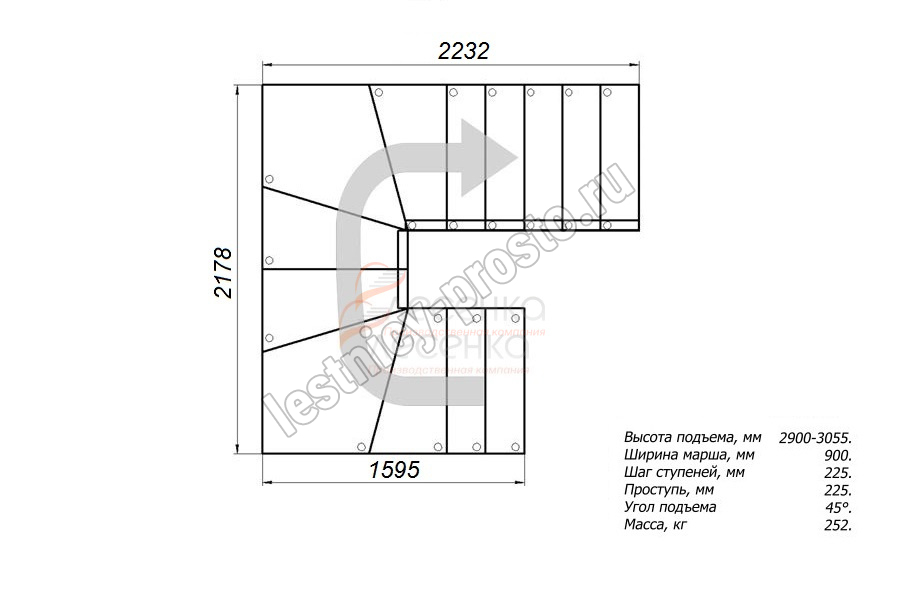 Модульная лестница Спринт 225 2925-3055, Черный, Лиственница, Нержавеющая сталь