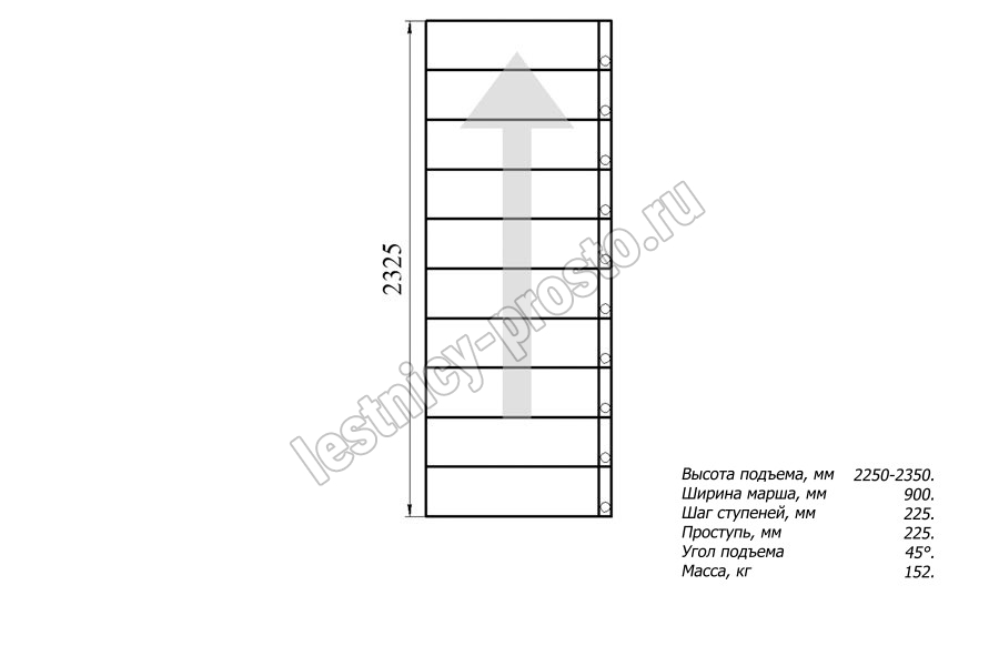 Модульная лестница Стандарт 2250-2350, Серый, Лиственница, Нержавеющая сталь