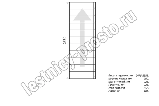 Модульная лестница Стандарт 2475-2585, Серый, Лиственница, Нержавеющая сталь