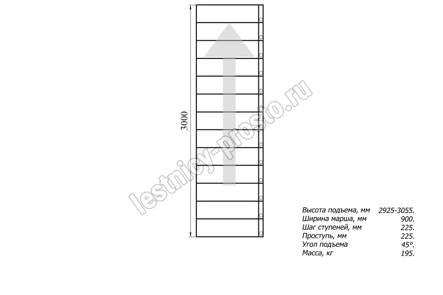 Высота лестницы 2925 - 3055 мм