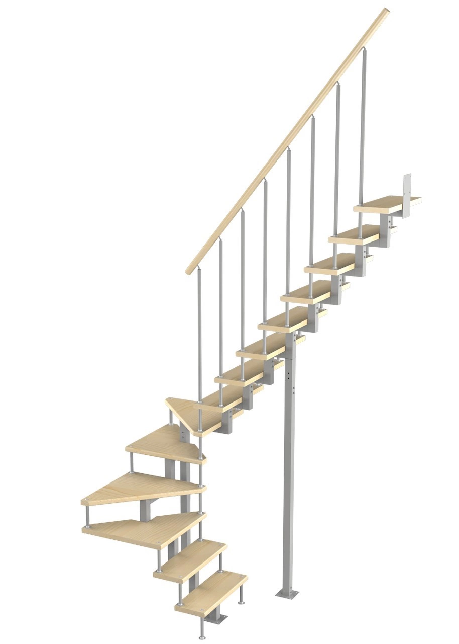 Модульная малогабаритная лестница Эксклюзив 2700-2925, Серый, Бук, Нержавеющая сталь