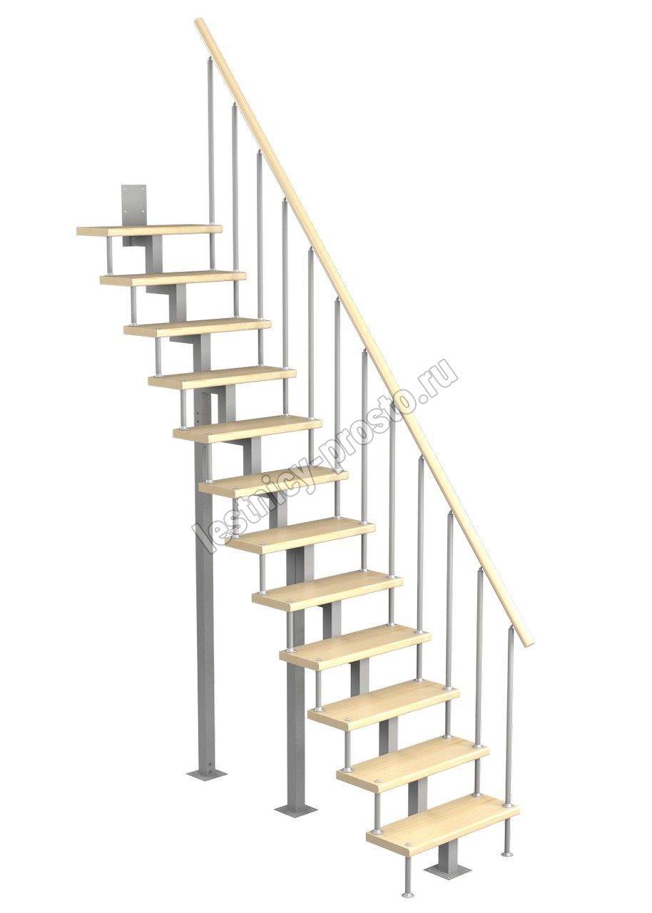 Модульная малогабаритная лестница Линия 2700-2925, Серый, Сосна, Крашеная, Без Ступений