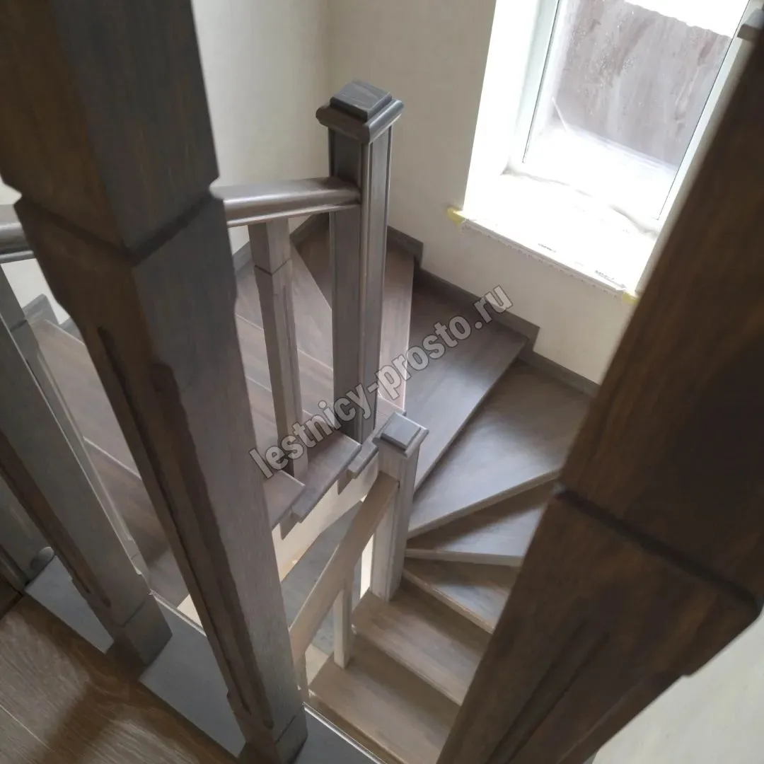 Ступени и поручень выполнены из срощенной лиственницы категории АВ.