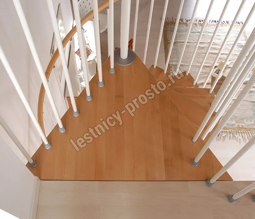 Перила состоят из стальных балясин, окрашенных в черный (RAL 9017), белый (RAL 9010) или серый (RAL 9006). Концы черные для черной лестницы и серые для серой и белой лестниц.