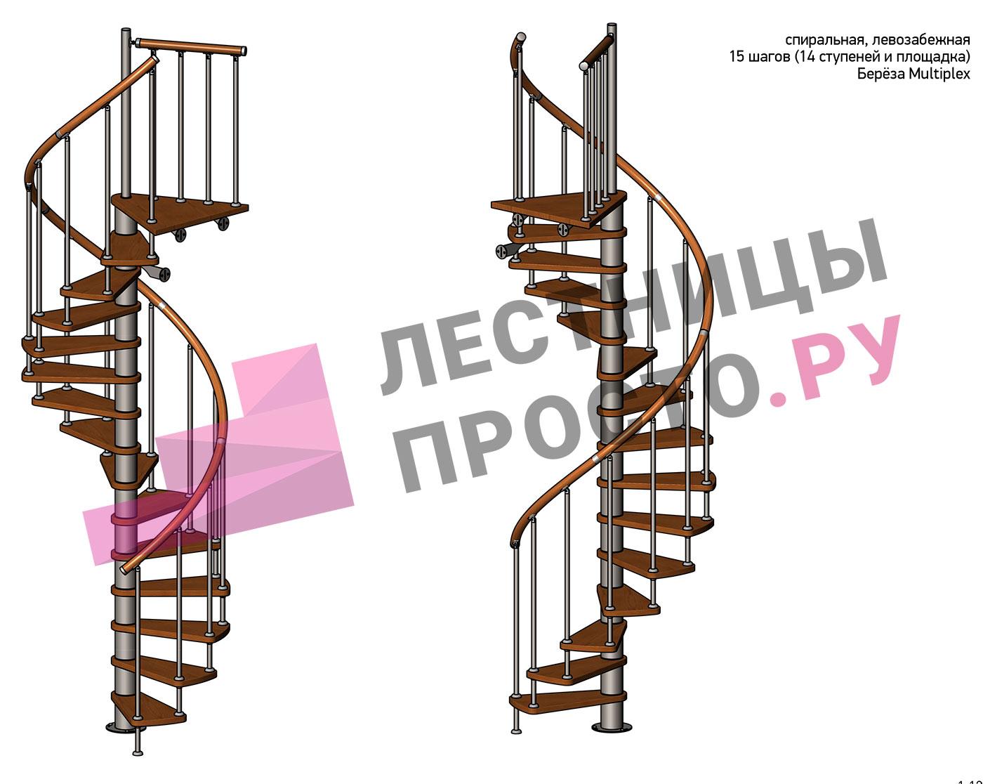 Решение об ориентации поворота лестницы принимается при сборке (комплект собирается и в правозабежную, и в левозабежную лестницу)