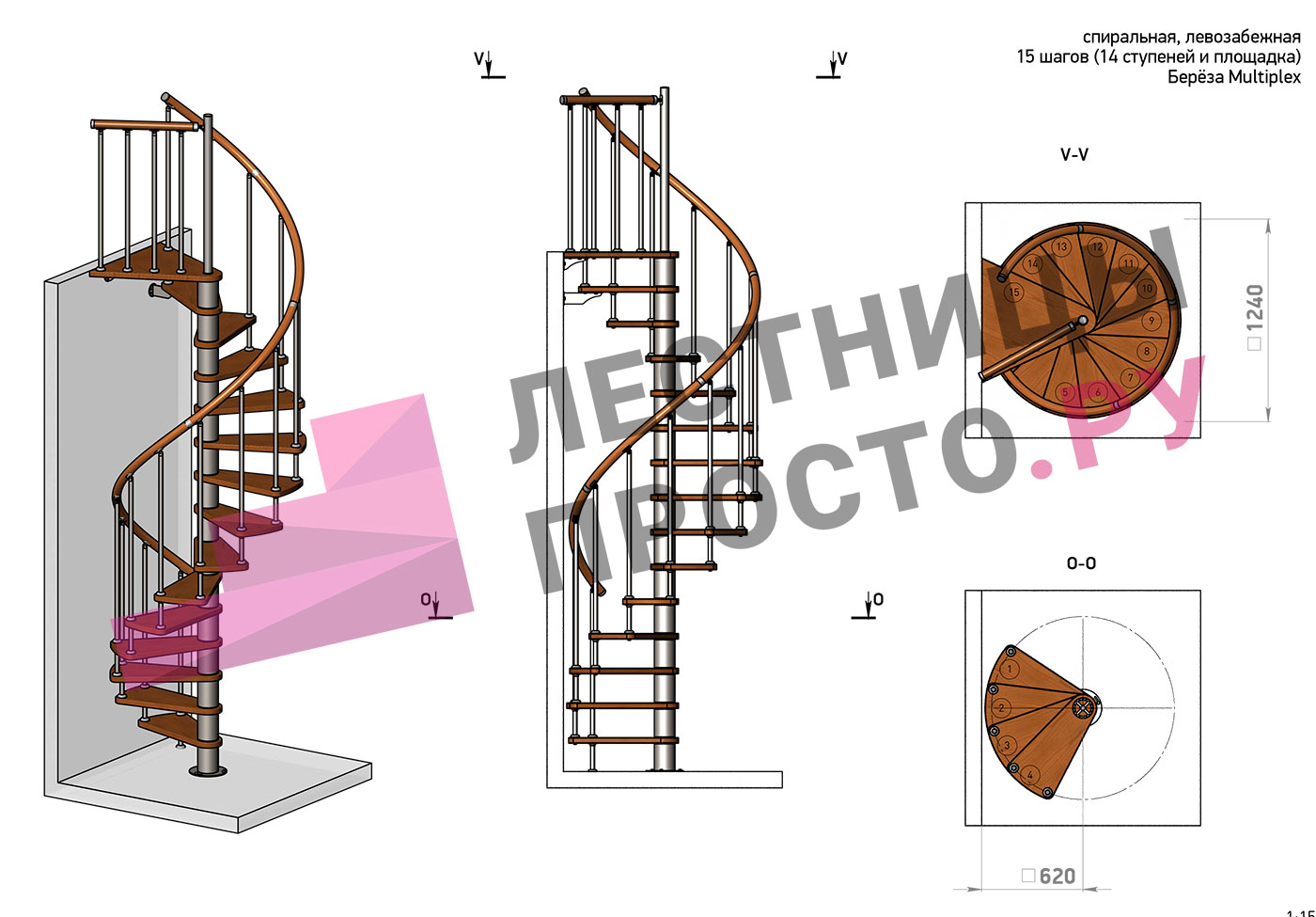 Высота лестницы 3182 - 3623 (14 ступеней) мм