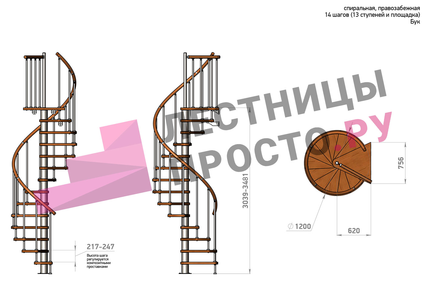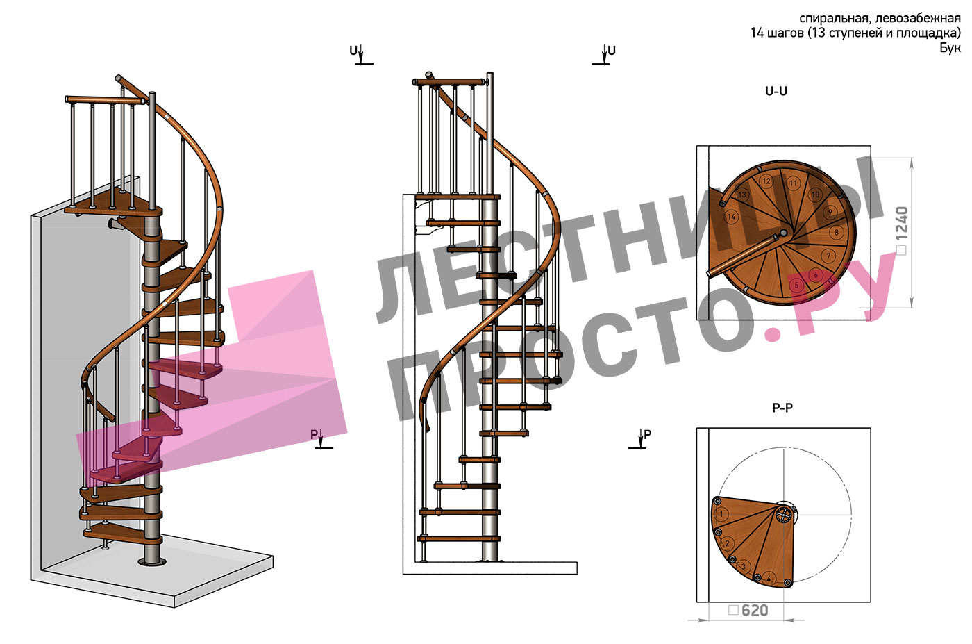 | Винтовая лестница Prosto Spiral Black D140см, h303.9-348,1 см, бук |