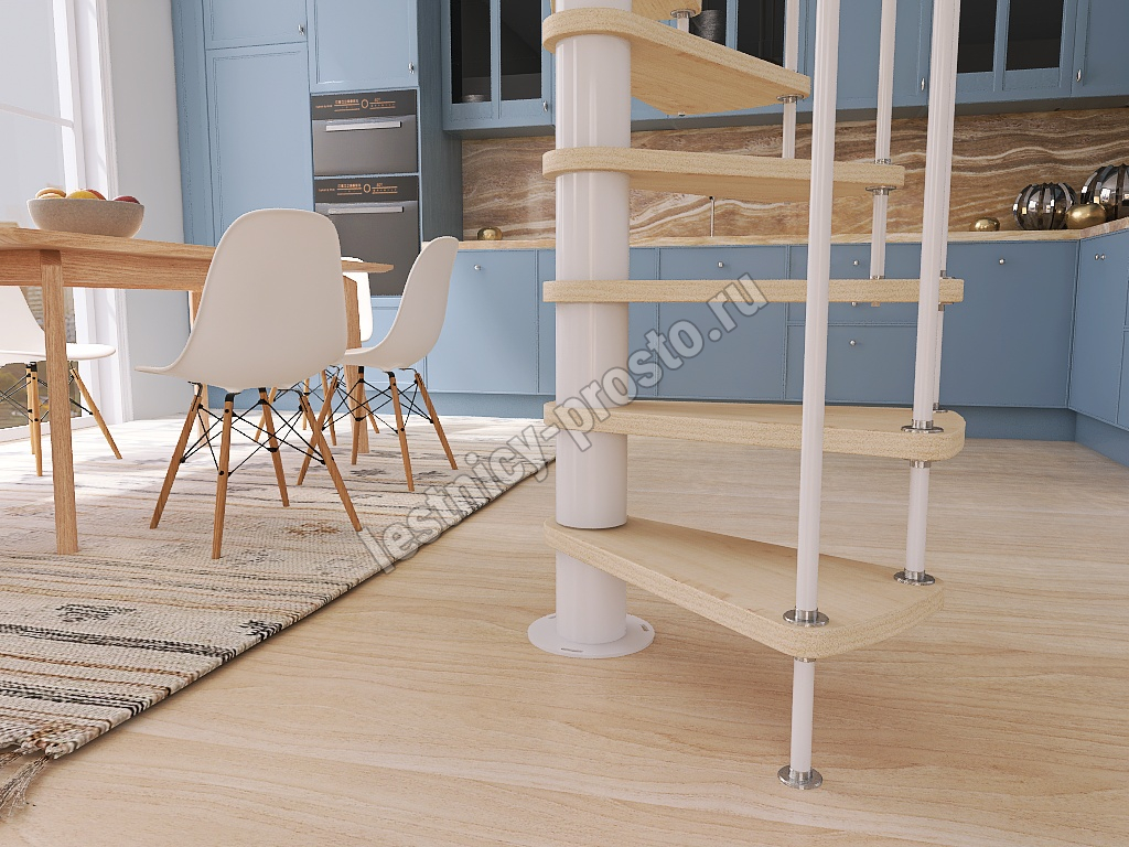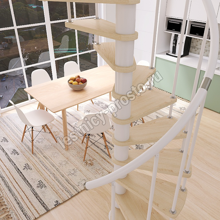 Винтовая лестница Prosto Spiral White D160см, h260.5-304.6 см, бук