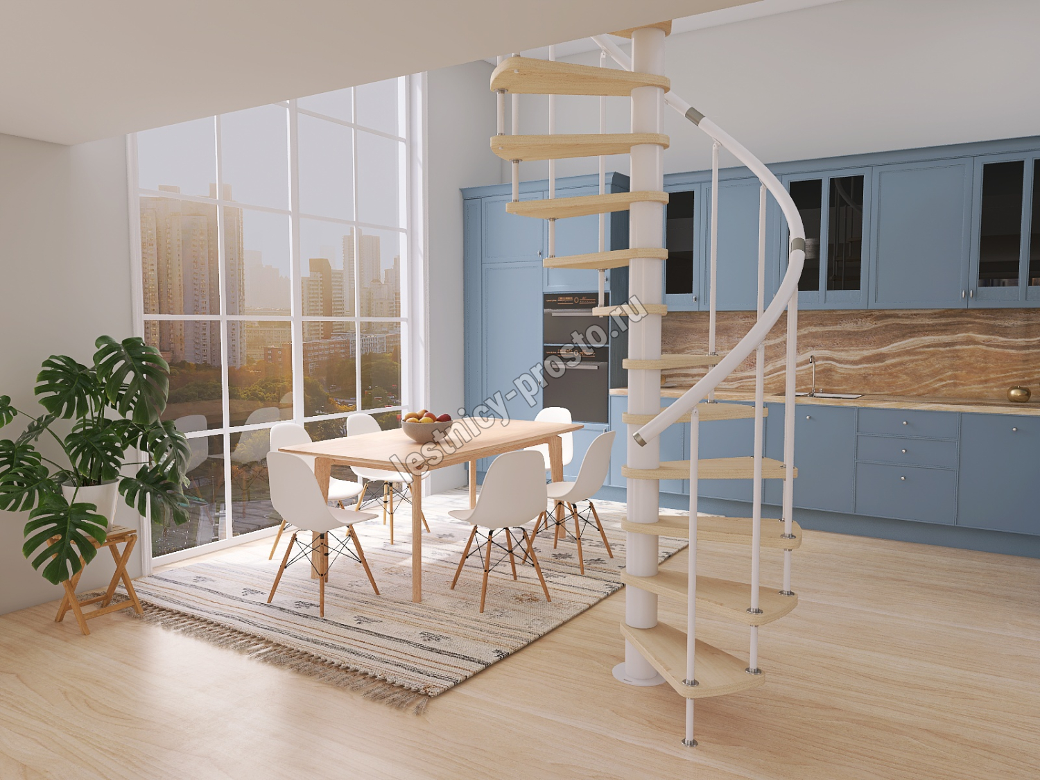 Винтовая лестница Prosto Spiral White из бука