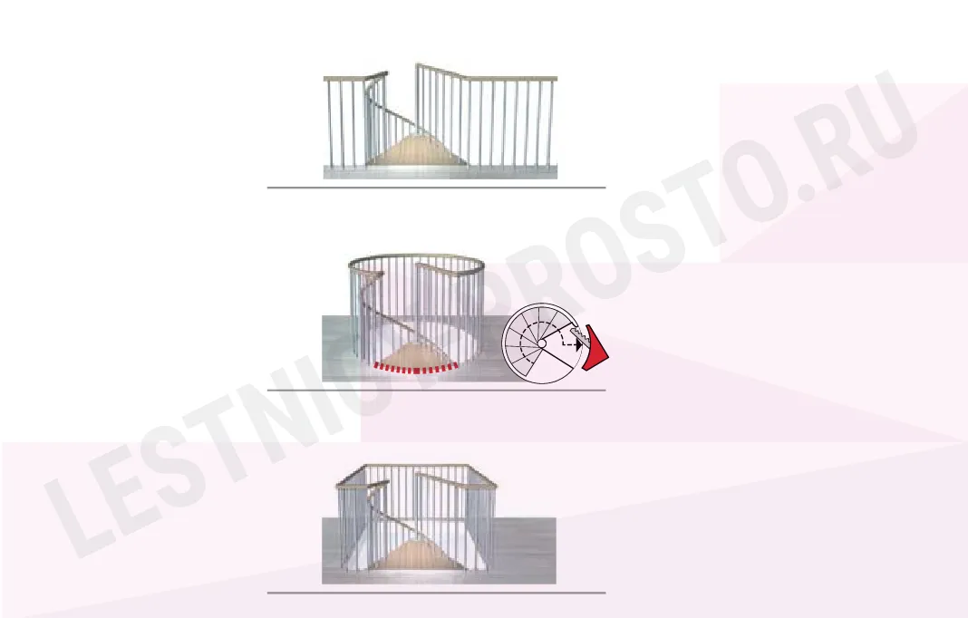 При монтаже лестницы, с помощью специальных пластиковых вставок, варьируется высота шага в пределах от 210 мм до 235 мм, за счёт чего общая высота лестницы может быть получена в пределах от 2530 мм до 3060 мм.