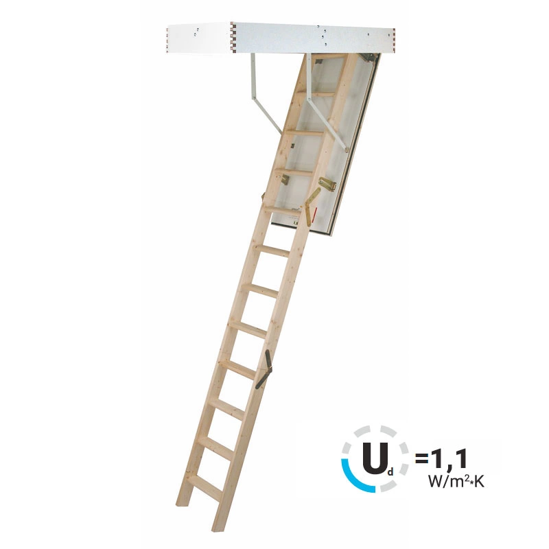 Лестница представлена в двух вариантах: с поворотом направо и с поворотом налево. Благодаря возможности регулировать высоту шага с помощью пластиковых вставок (входят в базовый комплект), высоту лестницы можно варьировать в пределах от 2860 до 3090 мм. Кроме того, купив дополнительную секцию для этой лестницы, можно поднять высоту до 3320 мм.