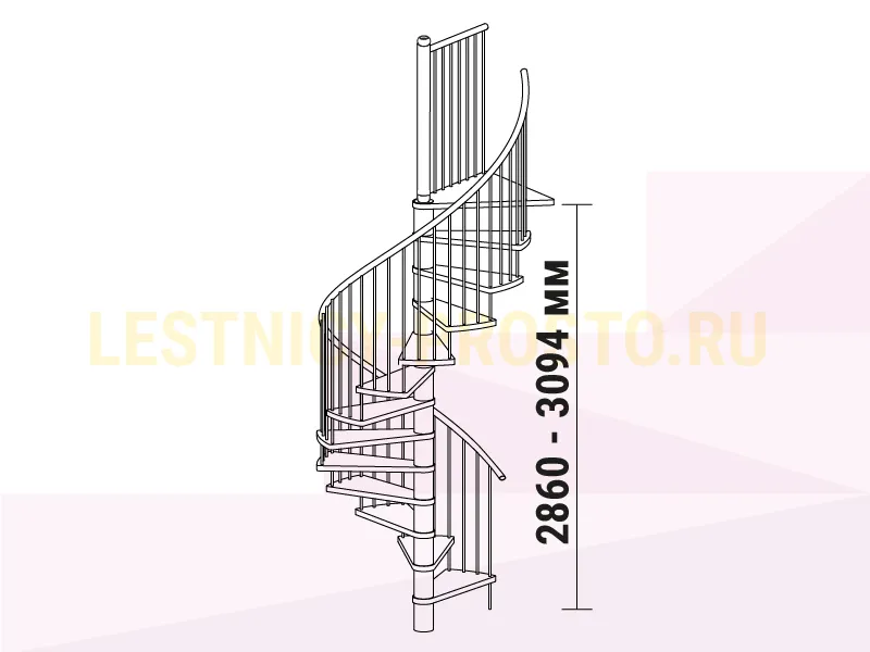 Лестница представлена в двух вариантах: с поворотом направо и с поворотом налево. Благодаря возможности регулировать высоту шага с помощью пластиковых вставок (входят в базовый комплект), высоту лестницы можно варьировать в пределах от 2860 до 3090 мм. Кроме того, купив дополнительную секцию для этой лестницы, можно поднять высоту до 3320 мм. Поручень изготовлен из массива бука в тон ступеням. Ступени и поручень покрыты износостойким защитным лаком.