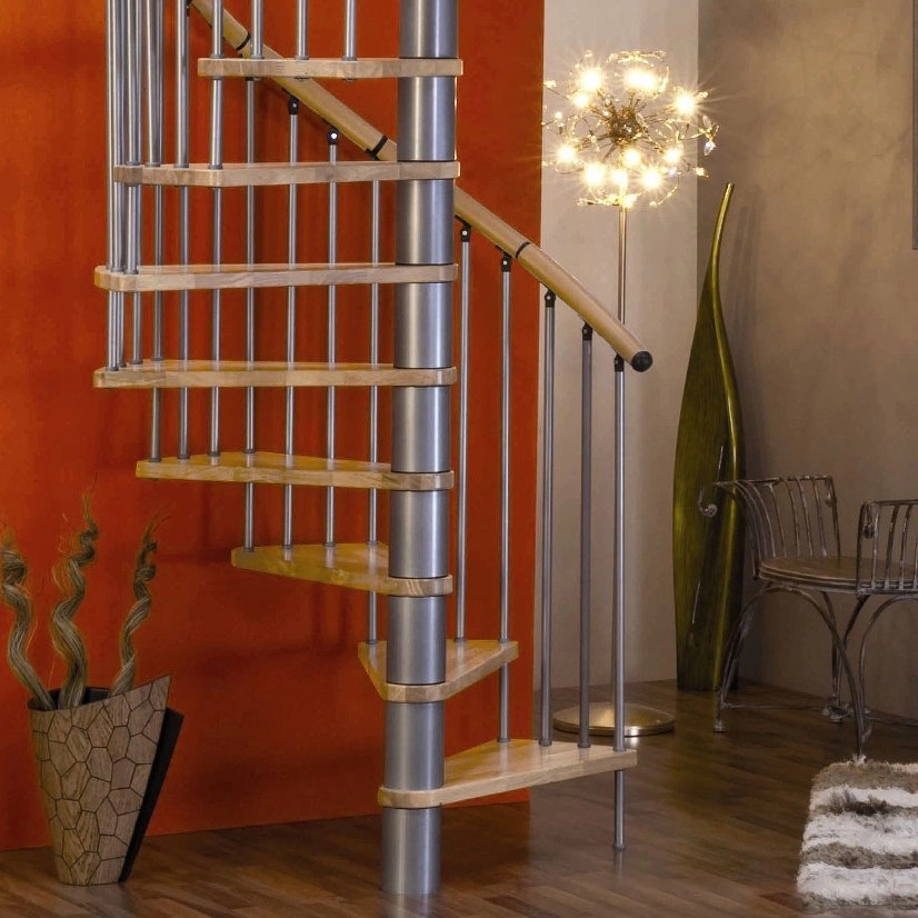 Лестница представлена в двух вариантах: с поворотом направо и с поворотом налево. Благодаря возможности регулировать высоту шага с помощью пластиковых вставок (входят в базовый комплект), высоту лестницы можно варьировать в пределах от 2860 до 3090 мм. Кроме того, купив дополнительную секцию для этой лестницы, можно поднять высоту до 3320 мм. Поручень изготовлен из массива бука в тон ступеням. Ступени и поручень покрыты износостойким защитным лаком.