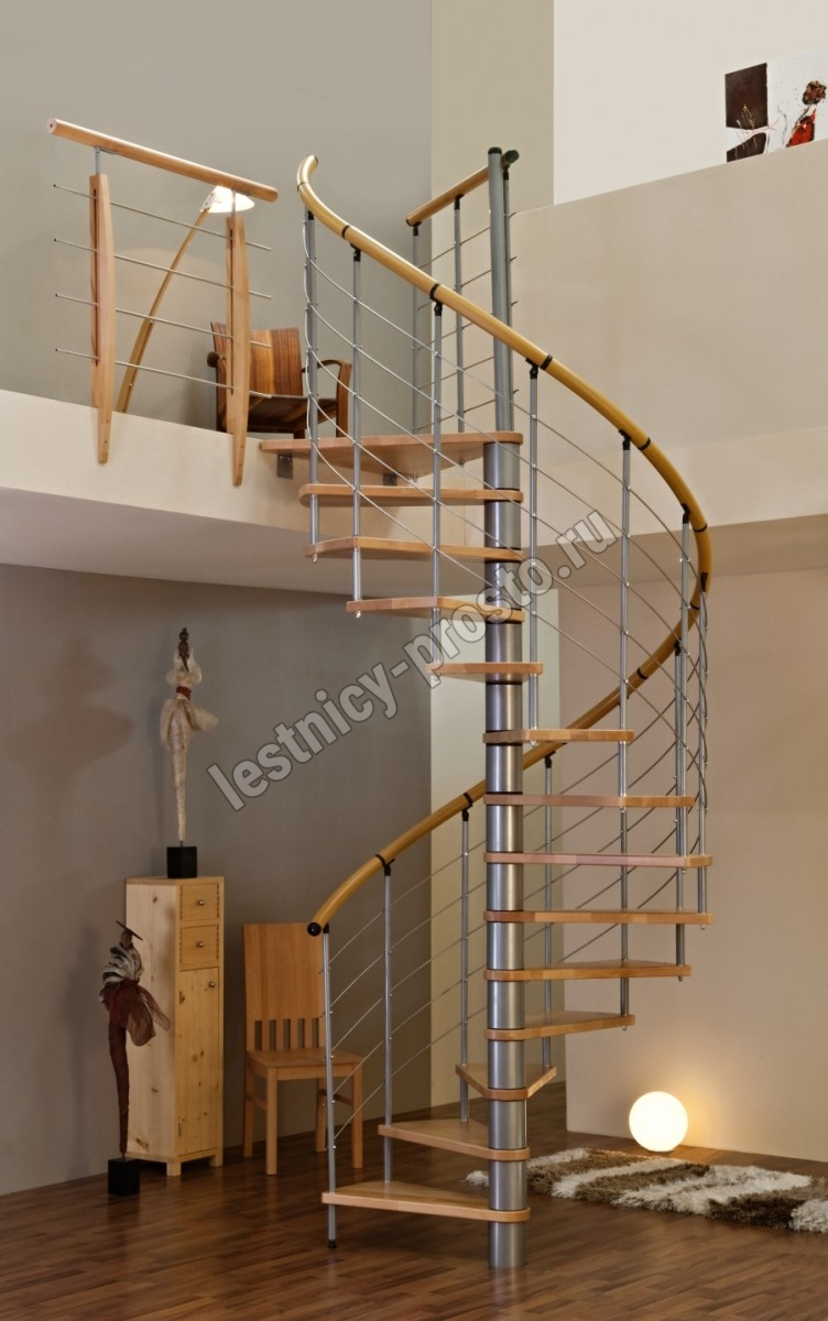Винтовая лестница Venezia d140 см, серебро, бук лакированный