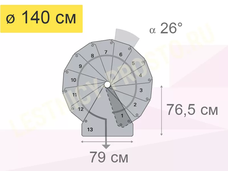 Высота лестницы регулируется при установке. С помощью специальных дополнительных секций, высоту лестницы можно увеличить до 3760 мм. (Секции покупаются отдельно).