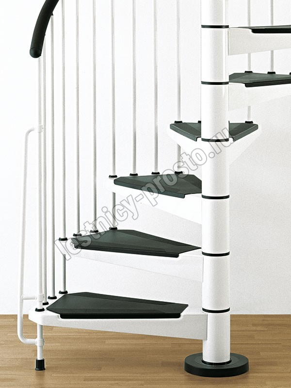 Отделка лестницы всегда в черном цвете. Перила из полиуретана с алюминиевым сердечником черного цвета, как и износостойкие нескользящие панели на ступенях.