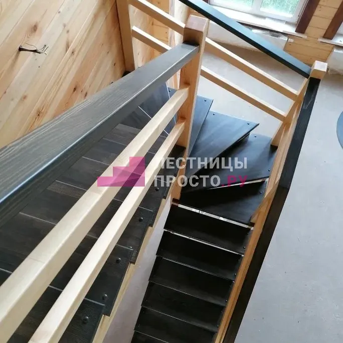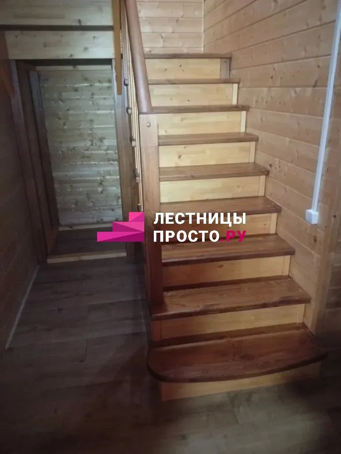 Г-образная лестница из сосны для частного дома ЛС-07/4